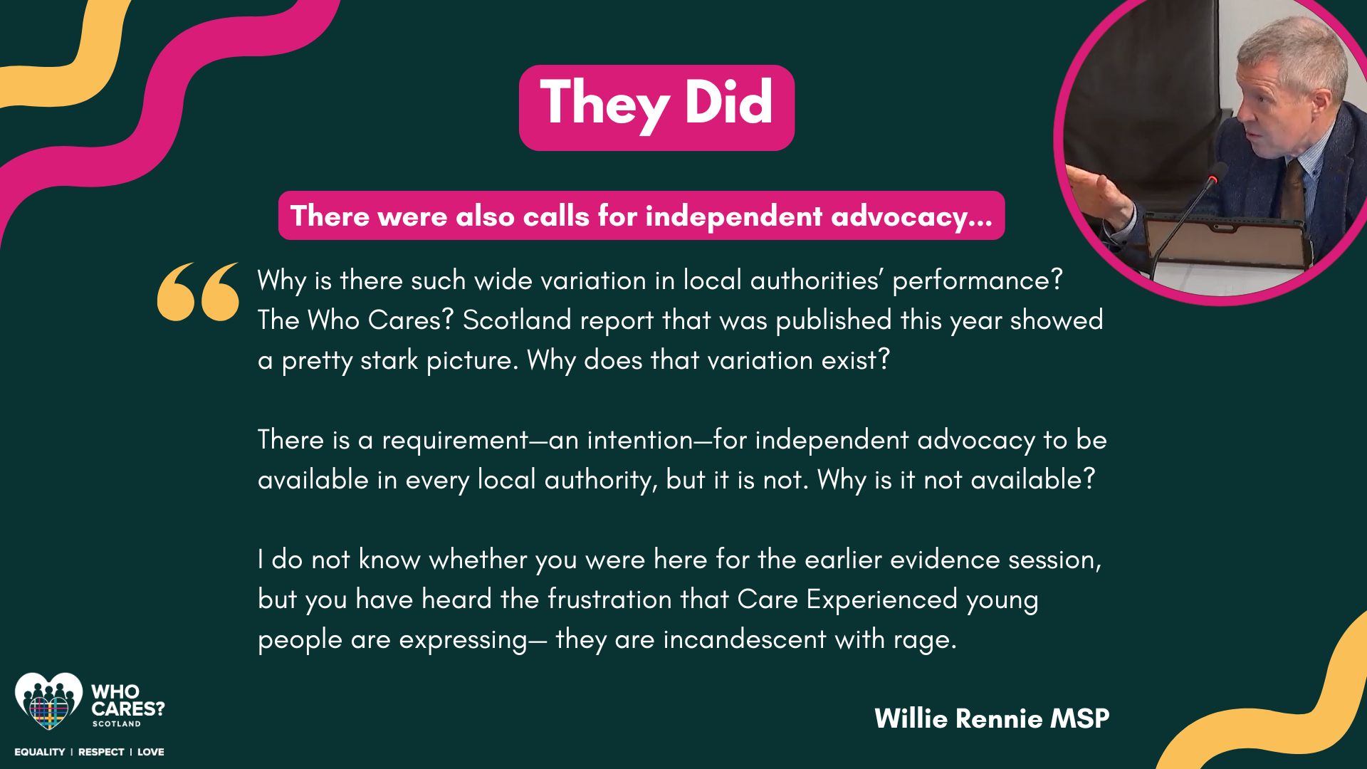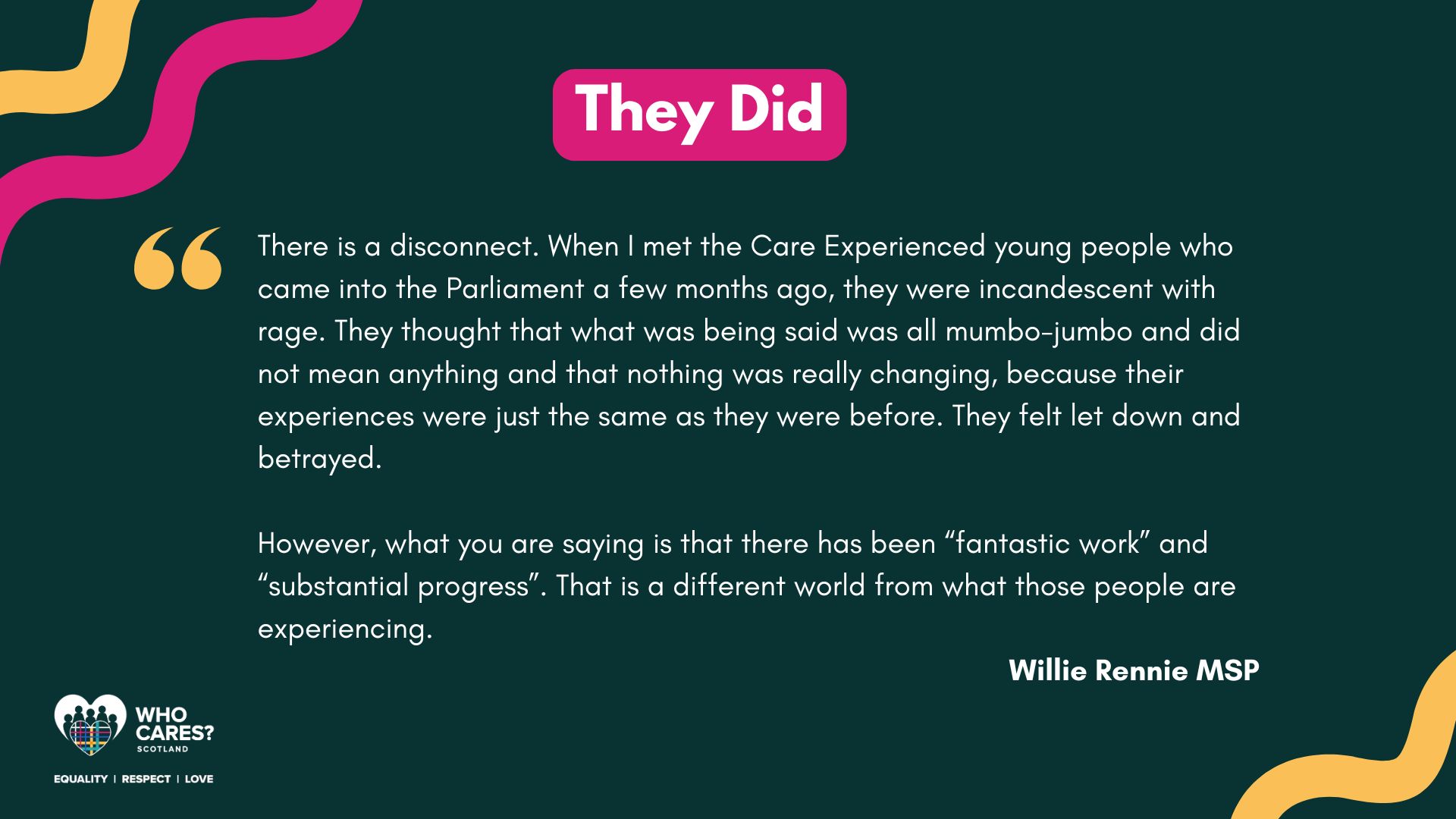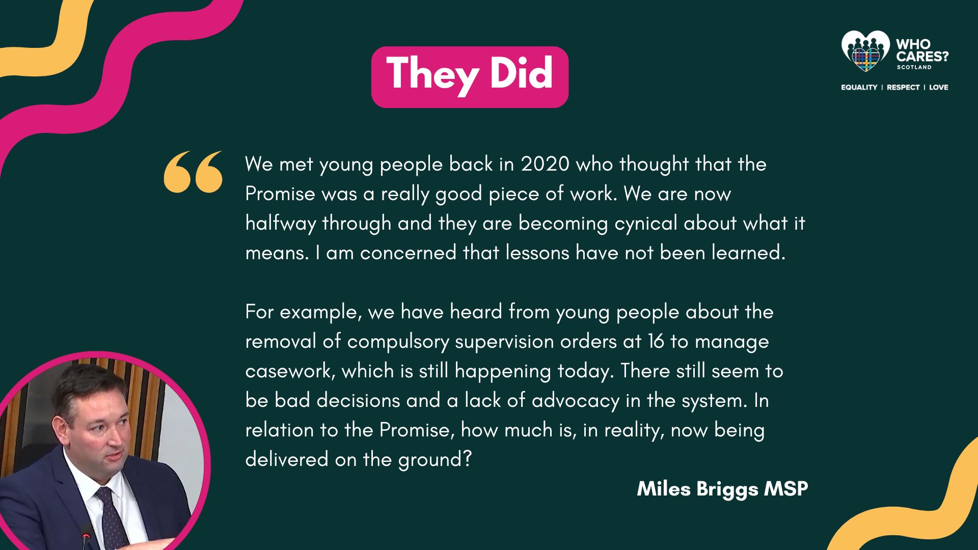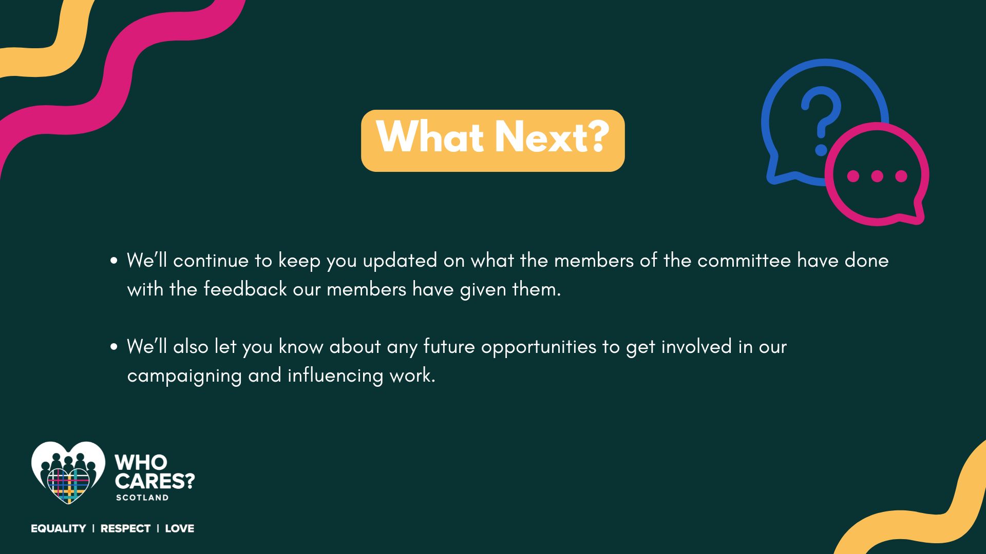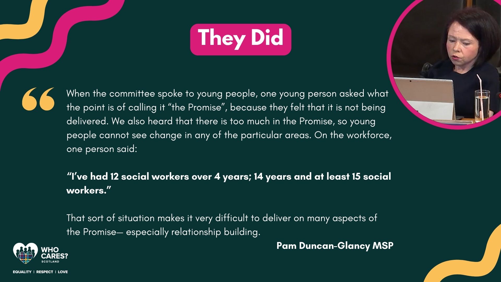 Over the past few months, the MSPs involved in the Committee have used the feedback provided by our members to influence discussions and meet with other organisations to discuss The Promise.